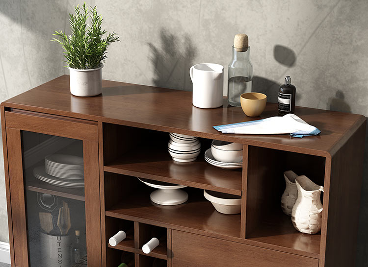 梵宜北欧の軽い贅沢な食事の辺のキャビネットの実のぼうっとしている食器棚のレストランの戸棚の逸品の家具の胡桃の色の食事の辺のキャビネット【ピクチャーの価格のブランドのオファー】-京東