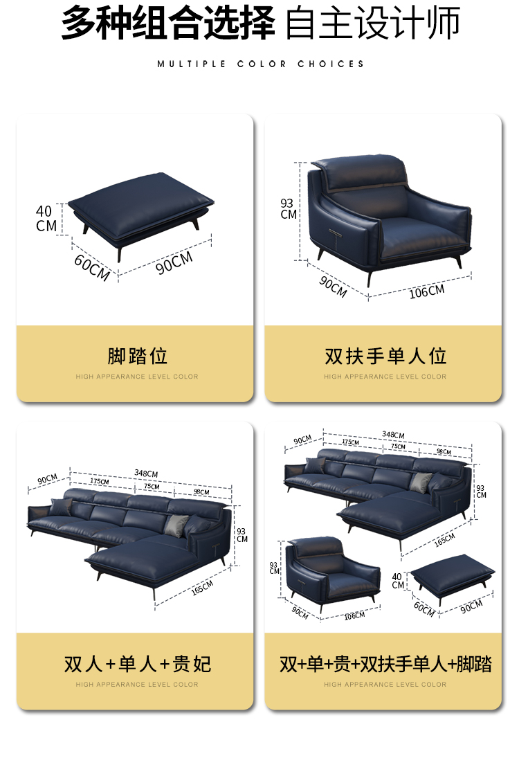 | 商品名称 | 梵愛式極簡ソファー北欧軽奢科学技術三防皮ソファセット現代皮芸ソファー家具ペア+シングル+貴妃+足米黄 |