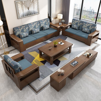 サンスクリット愛新中国式胡桃木ソファの木のソファセットのストレージソファ綿麻の布芸座って、リビングルームの家具の保管版を4人分+足を運ぶ【写真価格のブランドのオファー】-京東