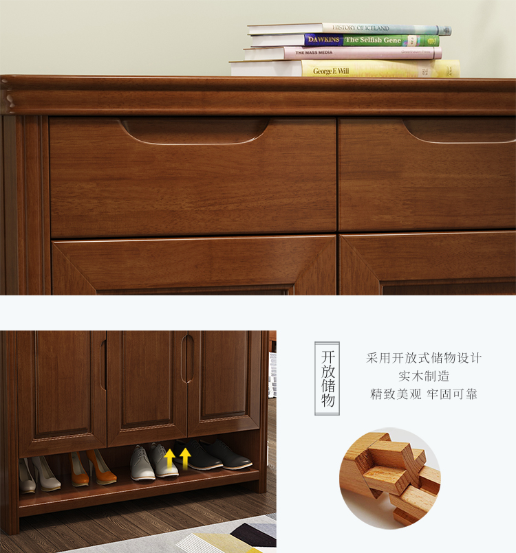 梵宜の靴の箱は現代中国式の本当の木の扉が靴の箱の扉を引き出した後に靴の棚を持ってロッカーを持って現代の家具の3つの靴の箱の胡桃色を収めます。