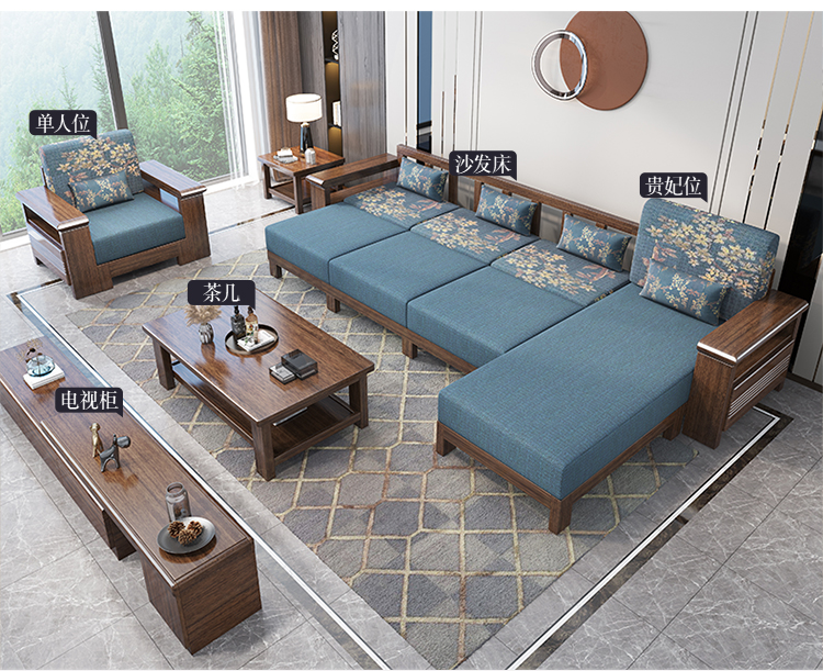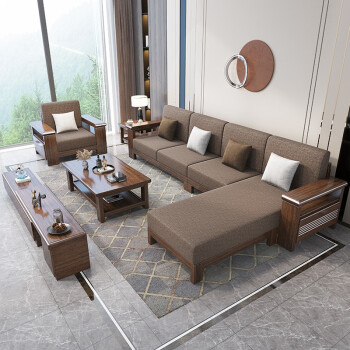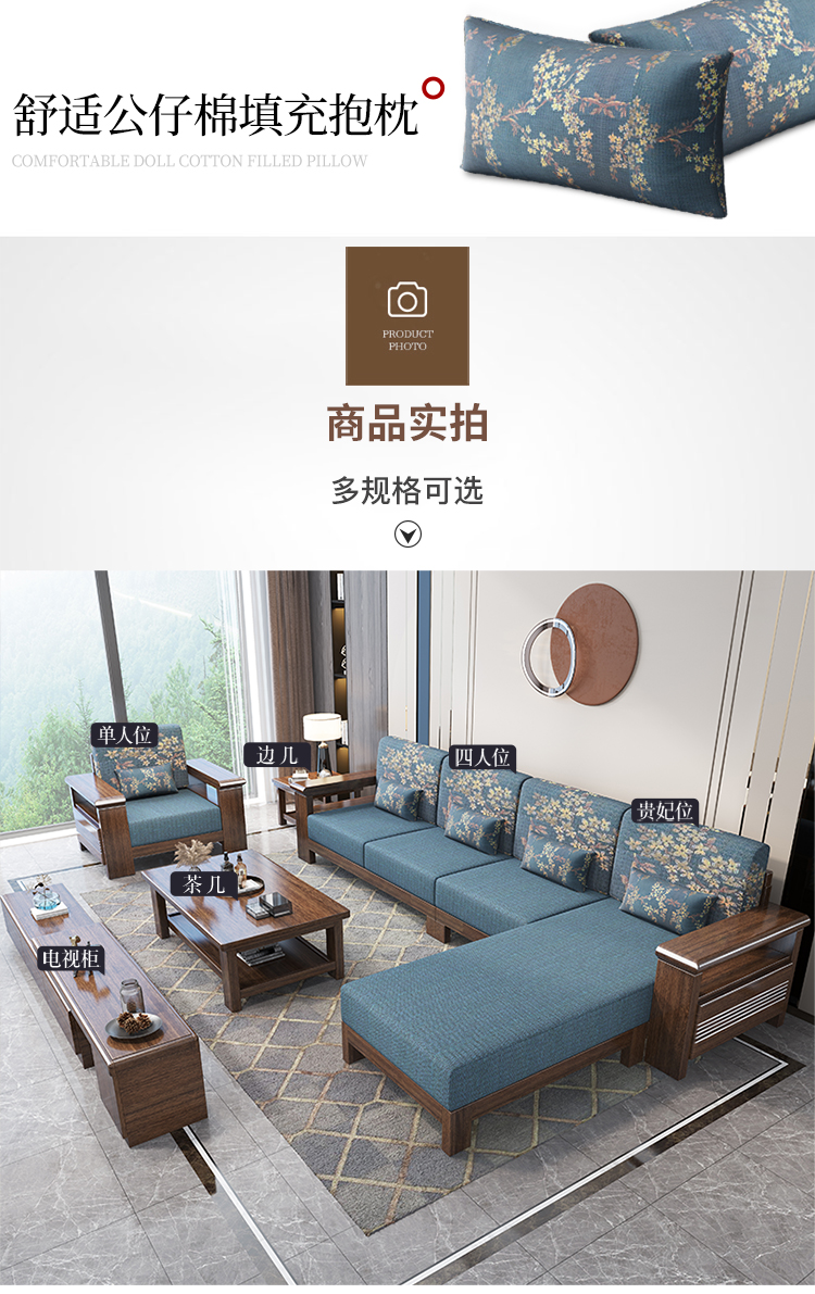 | 商品名称 | 梵愛胡桃木実木ソファ現代中国式客間木製布芸セットソファラテックスシートバッグ |