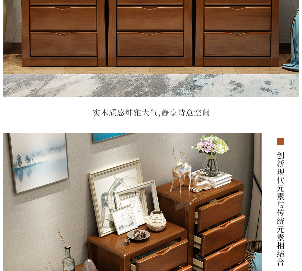 サンスクリット愛斗タンスリビングキャビネットキャビネットの実木斗タンス寝室引き出し式収納棚経済型ゴム木室家具五斗棚海棠色