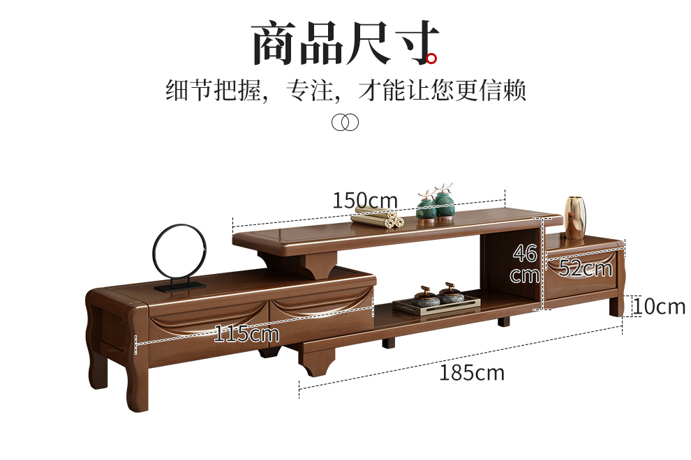 梵愛テレビキャビネット新中国式ゴム木の家具はリビング家具のテレビキャビネットに伸縮可能です。