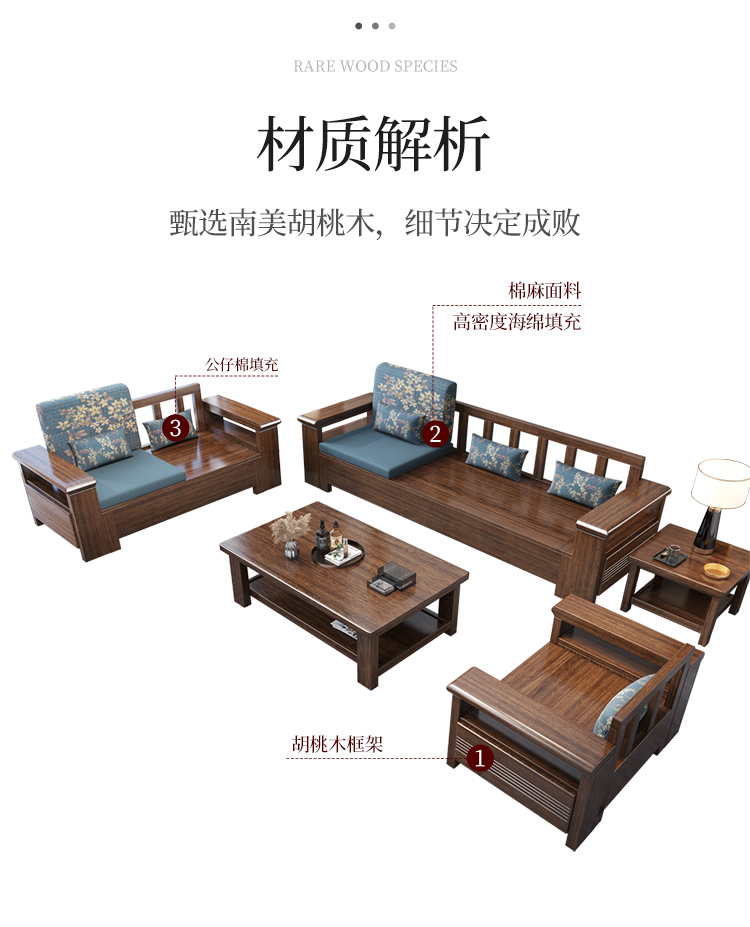 サンスクリット愛ソファ胡桃木の実木ソファ現代中国式リビングルームの実木布芸セットソファ冬夏兼用収納版四人位+足+双手すりシングル位【写真価格ブランド見積】-京東
