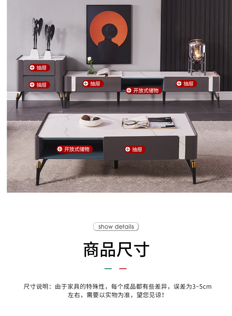 梵愛茶のいくつかの岩板のデスクトップの現代簡単な茶のいくつかのテレビの箱の組合せは軽奢で豪華です。