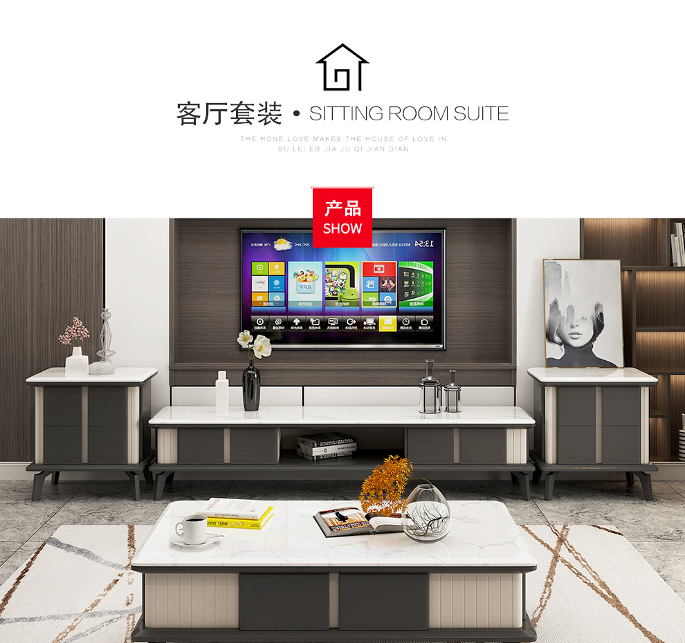 梵愛現代簡単テレビキャビネット茶の組み合わせセット北欧大理石リビング家具家庭用の小さな戸形のいくつかのキャビネットの組み立て