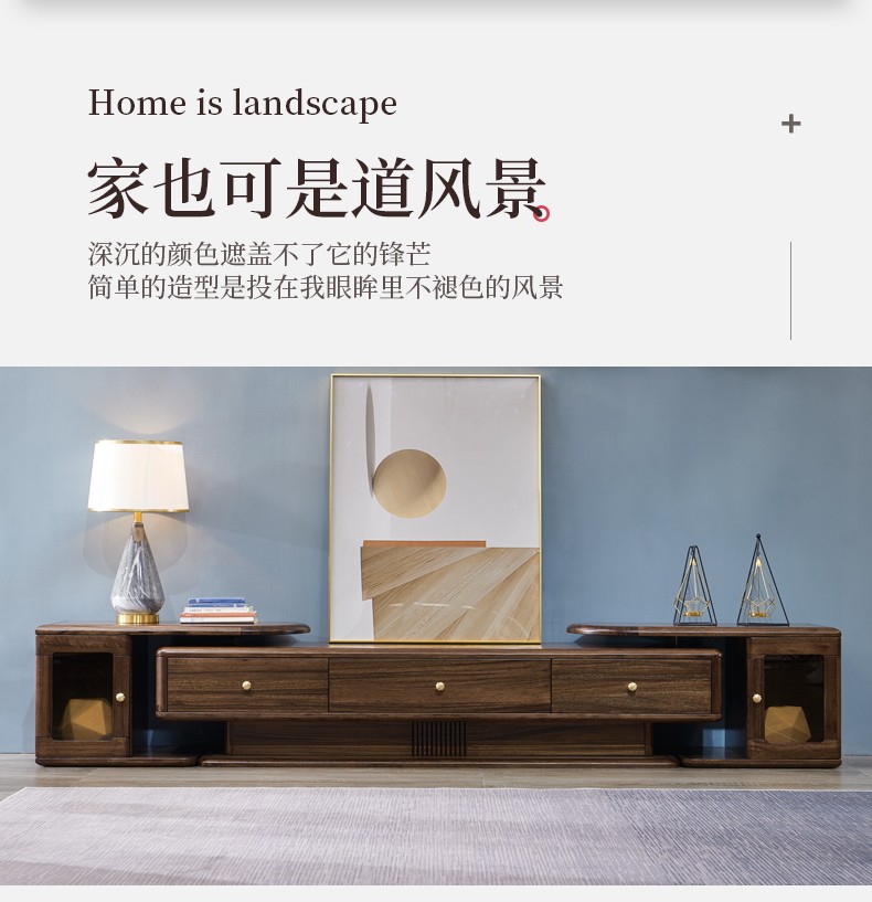 サンスクリットテレビキャビネット北米の黒いクルミの木の実木のテレビのキャビネットはアメリカンテレビの客間の戸棚の映画とテレビの箱の暗いクルミの色のテレビの箱の8 K 02〓〓テレビの箱の北米の暗いクルミの木の木に伸縮することができます