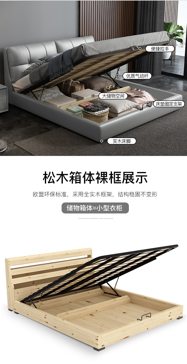 ヴァン愛ベッドの皮のベッド1.5メートル1.8メートル北欧のダブルベッドのシングルコレクションの高箱のベッドの近代的なシンプルな軟製の皮のベッドの主なベッドルームの家具(1500*2000)松の木のフレームの構造のベッド+0001〓ベッドの頭の箱*1+588〓乳液のマットレス