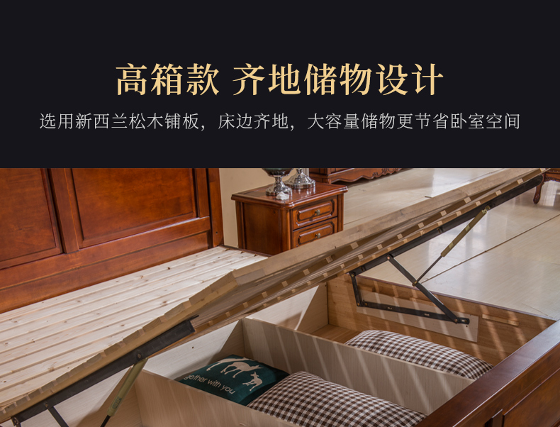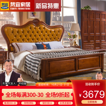 梵宜ベッドの実木ベッドアメリカの桃の花の芯の木のシングルのダブルベッドの1.8 mのソフトは高級な皮のベッドの高箱に頼って物の寝室の逸品の家具の本当の木のベッドを蓄えます。