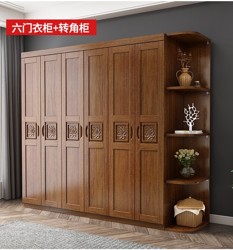梵宜箪笥現代中国式の実木箪笥三門五門の六門の箪笥にサイドトップの棚の大きさと経済型の箪笥の収納棚を組み合わせて寝室の家庭用家具六門+上の棚+サイドキャビネットの胡桃色を組み合わせます。