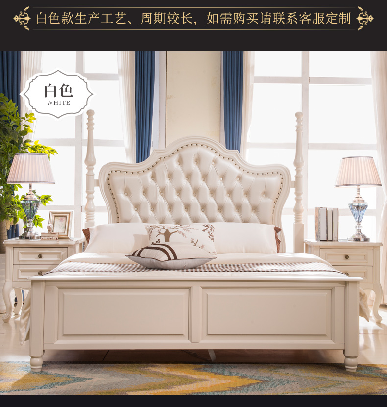 梵宜ベッドの実木ベッドアメリカの桃の花の芯の木のシングルダブルベッドの1.8 mのソフトは高級な皮のベッドの高箱に頼って物の寝室の逸品の家具の本当の木のベッドを蓄えます。