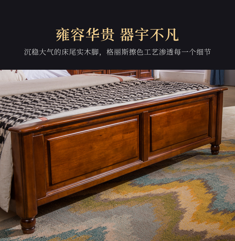 梵宜ベッドの実木ベッドアメリカの桃の芯の木のシングルダブルベッドの1.8 mのソフトは高級な皮のベッドの高箱に頼って物の寝室の逸品の家具の本当の木のベッドを蓄えます。