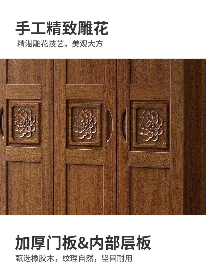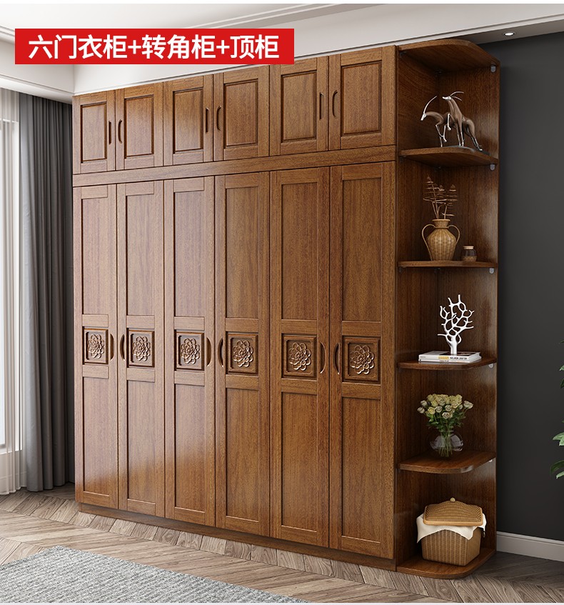 梵宜箪笥現代中国式の実木箪笥三門五門の六門の箪笥にサイドトップの棚の大きさと経済型の箪笥の収納棚を組み合わせて寝室の家庭用家具六門+上の棚+サイドキャビネットの胡桃色を組み合わせます。