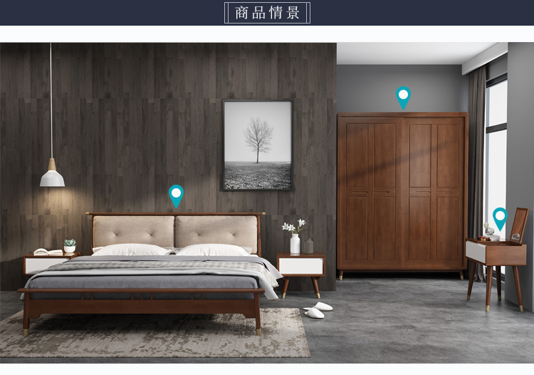 梵宜北欧の軽奢な実木のダブルベッドは1.5/1.8メートル*2メートルで簡単に現代の王女が結婚します。大型ベッドの小型ベッドルームは簡単なシングルベッドです。
