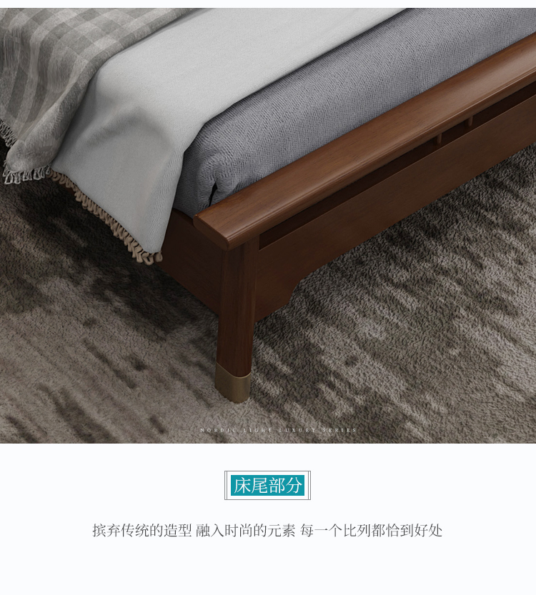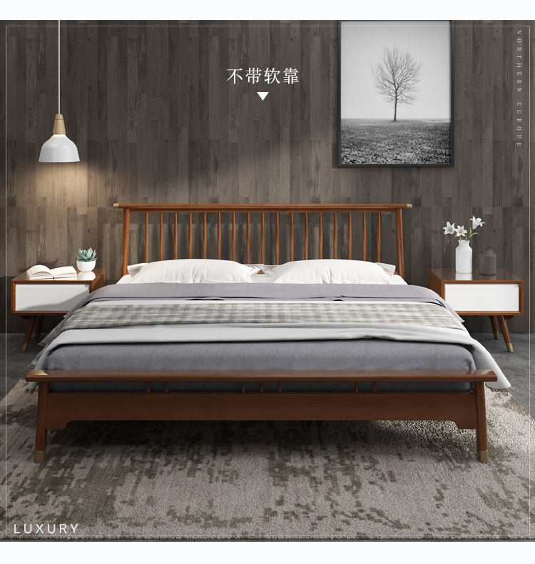 梵宜北欧の軽奢な実木ダブルベッドは1.5/1.8メートル*2メートルで簡単に現代の王女が結婚します。大型ベッドの小型ベッドルームは簡易シングルベッドです。高級家具の実木ベッド(ソフトを持たない)は1.8*2.0 mです。