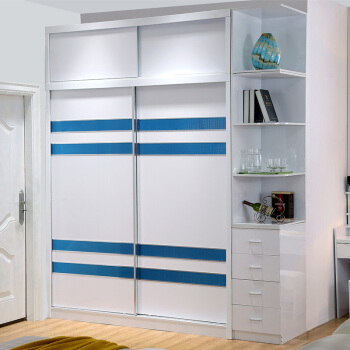 梵愛箪笥のドアの箪笥の白と青の間に大きなロッカーがあります。寝室の家具箪笥+上の棚の1.8メートル。