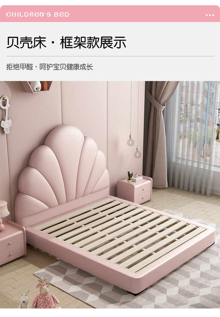 サンスクリット愛ベッド真皮ベッド現代プリンセスベッドピンク真皮シーツ人1.2メートル漫画少女ベッド創意実木ベッド1.5メートルネット紅簡約貝殻ベッド+ベッドヘッド棚*1 1800*2000(気動構造)