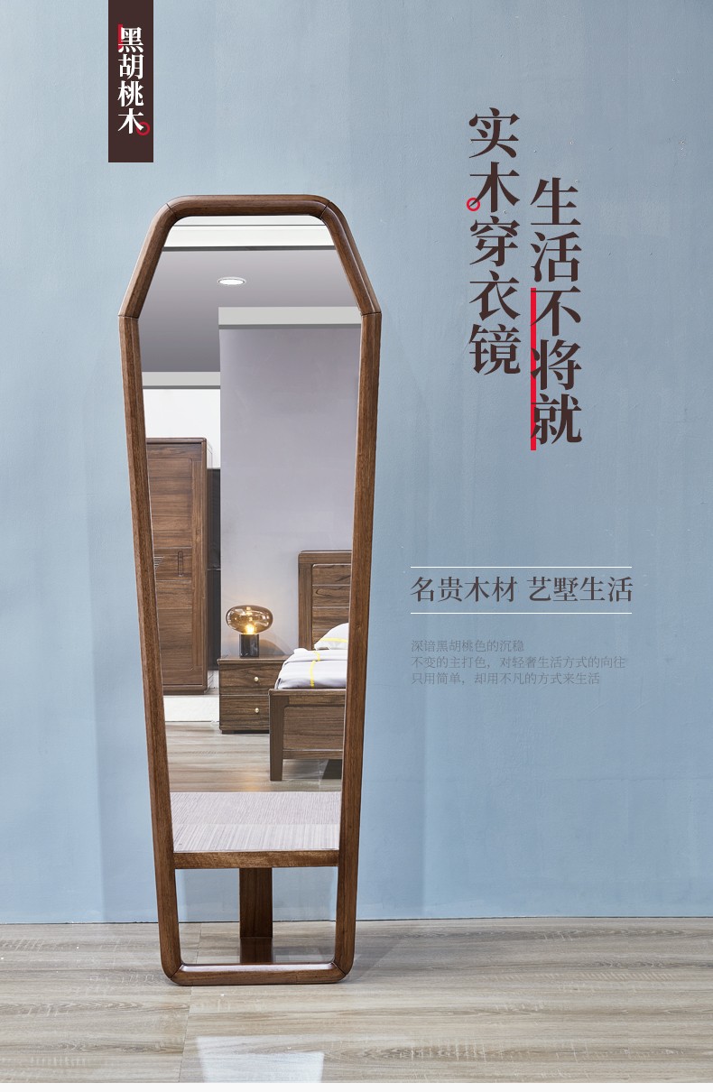 梵宜実木は衣服の鏡を着ます。北米の黒胡桃の木は着地して服の鏡を着て全身の鏡を移動できます。復古的なアメリカの別荘の寝室は修身鏡を修理します。