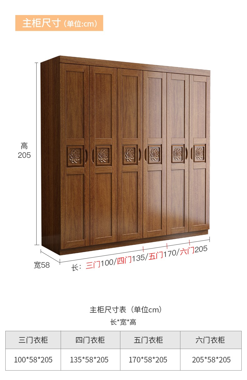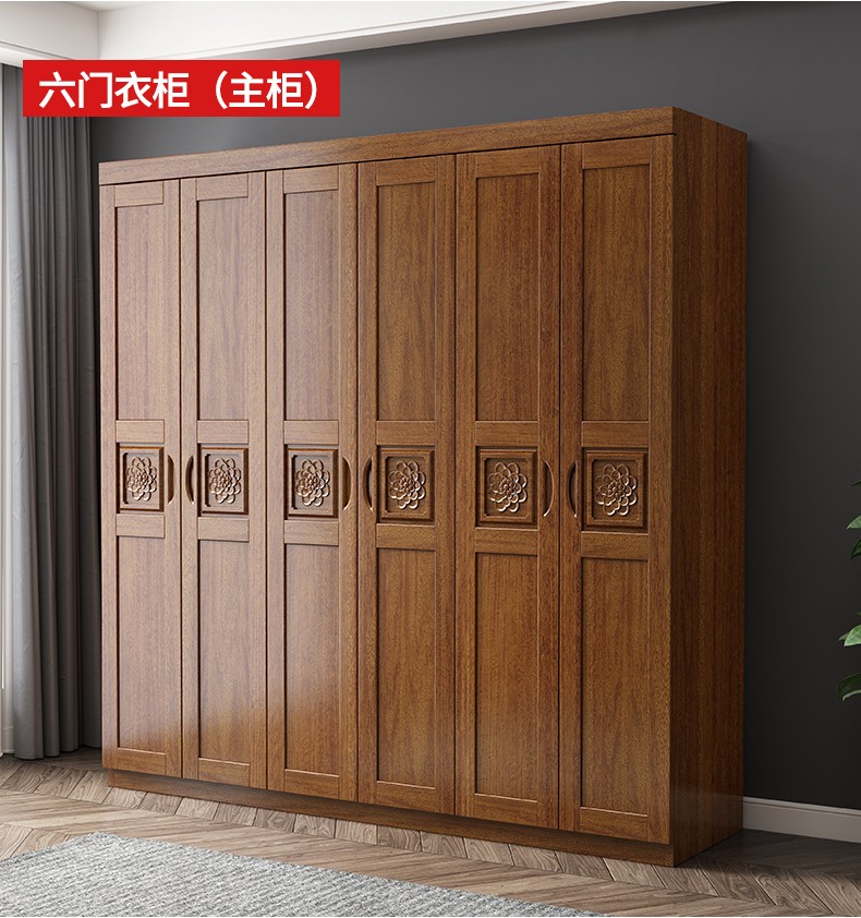 梵宜箪笥現代中国式の実木箪笥三門五門の六門の箪笥にサイドトップの棚の大きさと経済型の箪笥の収納棚を組み合わせて寝室の家庭用家具六門+上の棚+サイドキャビネットの胡桃色を組み合わせます。