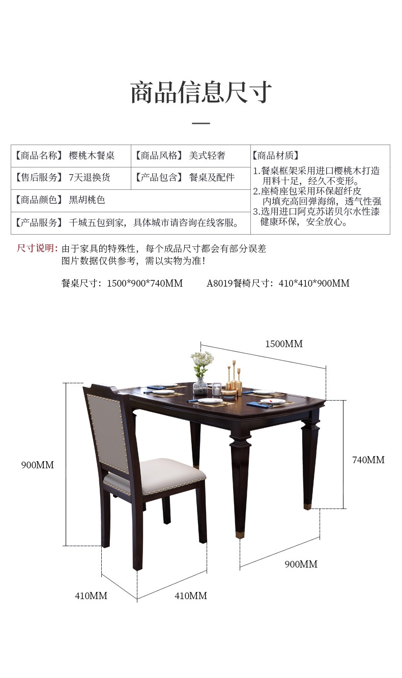 梵宜テーブルチェリー木のテーブルアメリカ風の軽い贅沢なテーブルとテーブルの組み合わせ小さなテーブルの家庭用食事テーブルレストラン逸品家具A 8019