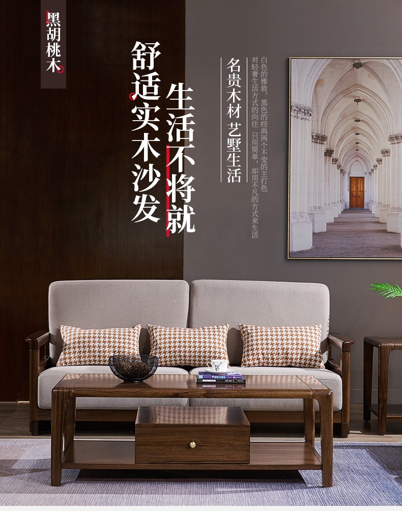 梵宜ソファ北アメリカ黒胡桃の木の実木ソファ1+2+3セットの布芸単双三人のソファーの大きさと部屋型のアメリカンソファは簡単にリビングルームの家具を予約します。8 W 03二人の席は北アメリカの黒胡桃の木です。