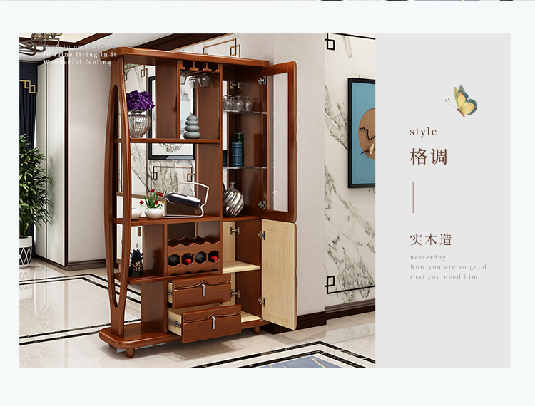 梵宜酒屋現代中国式の木造酒屋の間の戸棚の両面の仕切りの玄関棚の屏風棚の逸品の家具室の戸棚の胡桃色
