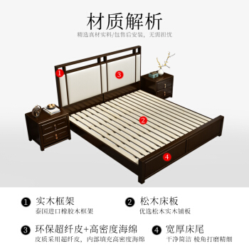 サンスクリットベッドのベッドに適したリアルウッドベッドのダブルベッド、新しい中国式の軽い豪華ベッド、1.8メートルの高さのトランクの結婚式ベッド、高級なベッドルームの逸品家具、木製のベッド、1.8*2.0 m