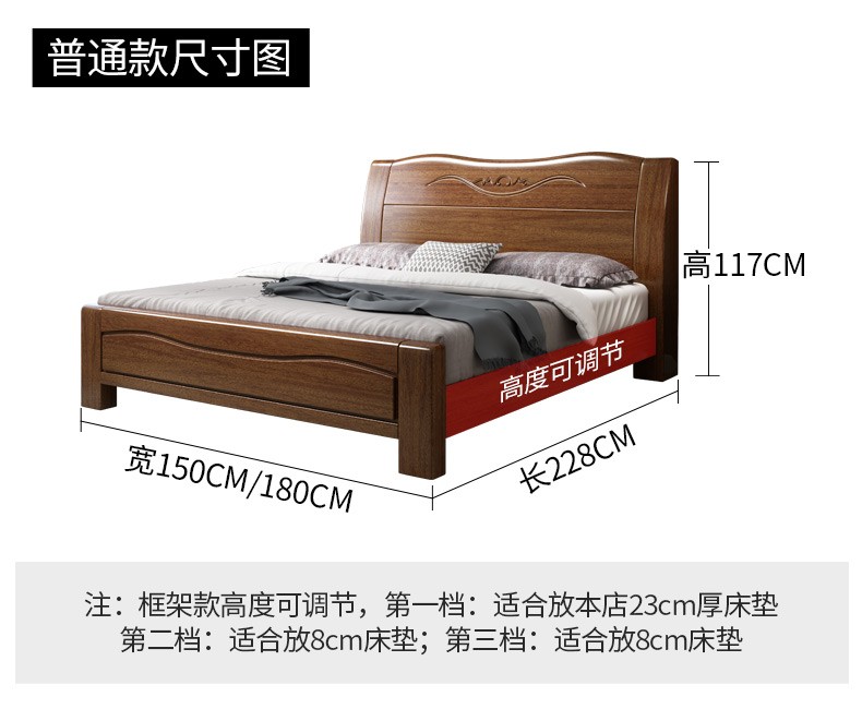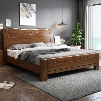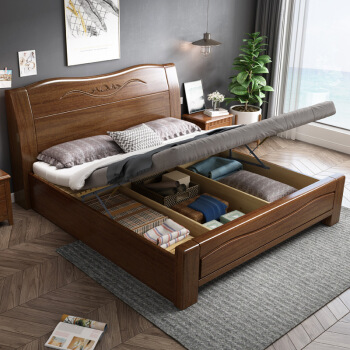 梵宜実木ベッド現代中国式ベッド1.8 mダブルベッドベッドベッドルーム高箱収納物ベッドプリンセスベッド結婚ベッド大ベッド1.5 m小型シングルベッド逸品家具普通ベッド1.8*2.0 m